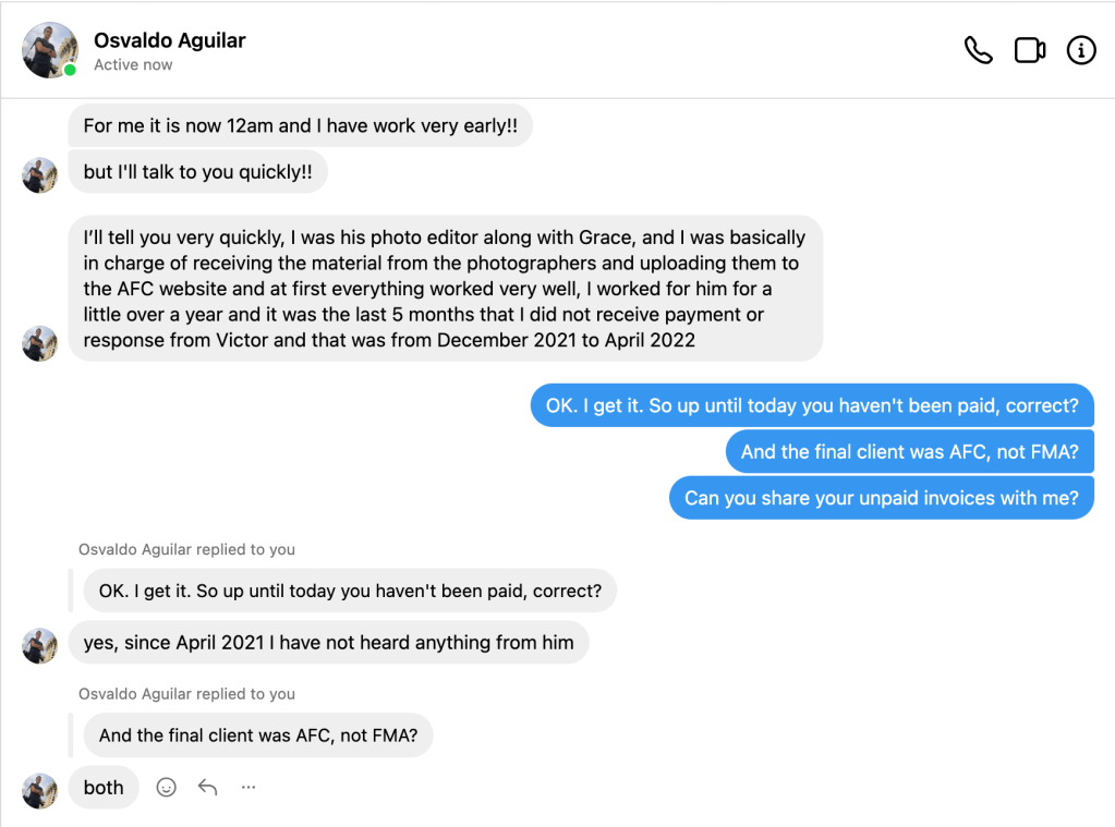 To this day, Osvaldo Aguilar is owed USD3,000 by Victor Fraile’s current company, Power Sport Images Limited