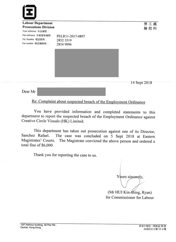 Victor Fraile escaped Hong Kong justice’s and decided to not appear in court to answer the charges of not paying his employees’ wages. His co-director, who chose to appear, was found guilty of the same crimes
